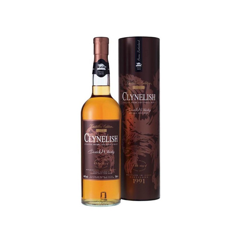 Le Clynelish Distillers Edition 1992 (bouteillé en 2009) est affiné en fût d'Oloroso Seco, un vin de xérès très sec contrebalançant la douceur marine et cireuse de ce malt côtier des Highlands du Nord.
